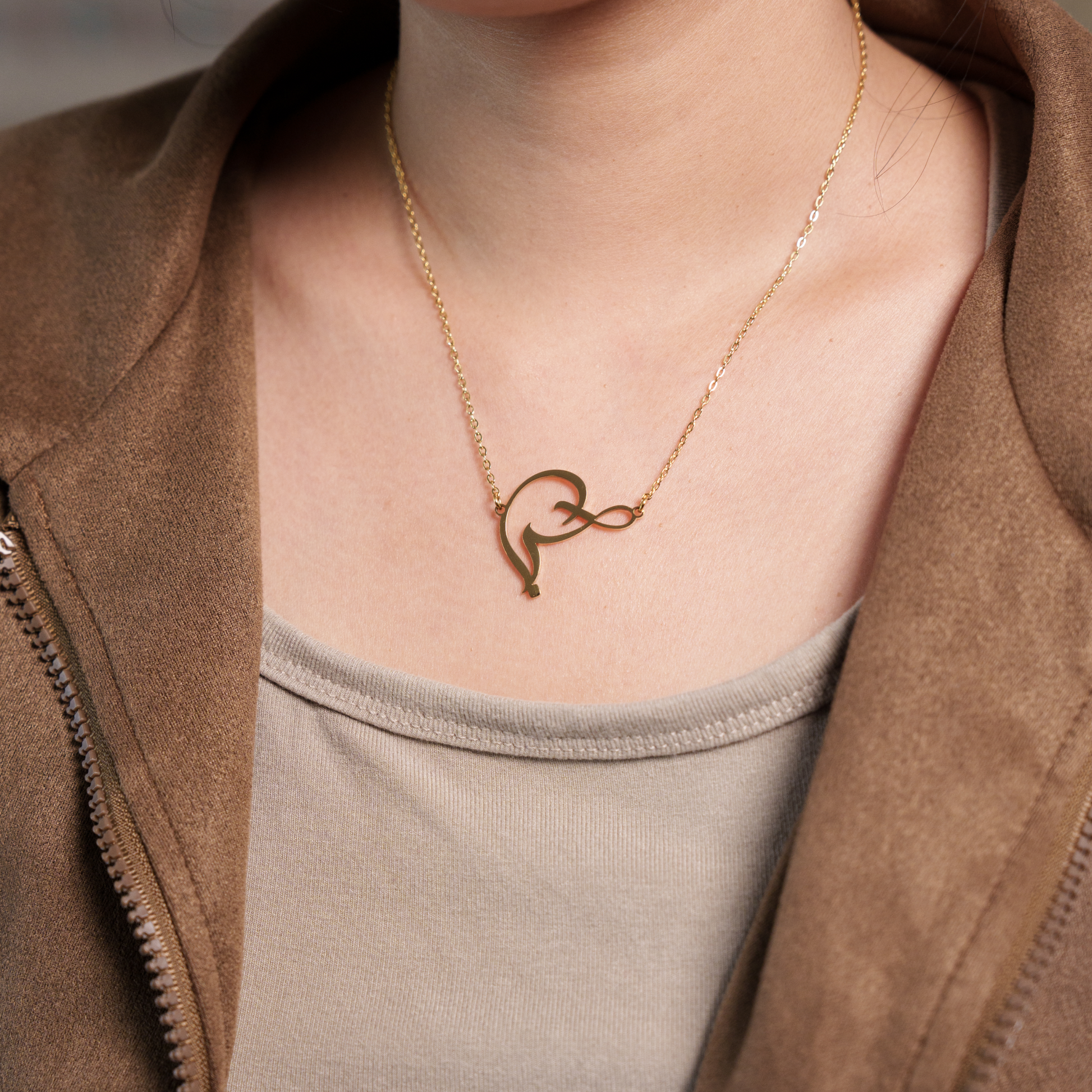 A single word, carrying the weight of the universe—حُب (Hob), meaning love. Engraved in delicate Arabic calligraphy, this necklace is more than jewelry; it is a whispered promise, a lingering embrace, a silent vow that love endures beyond words.
