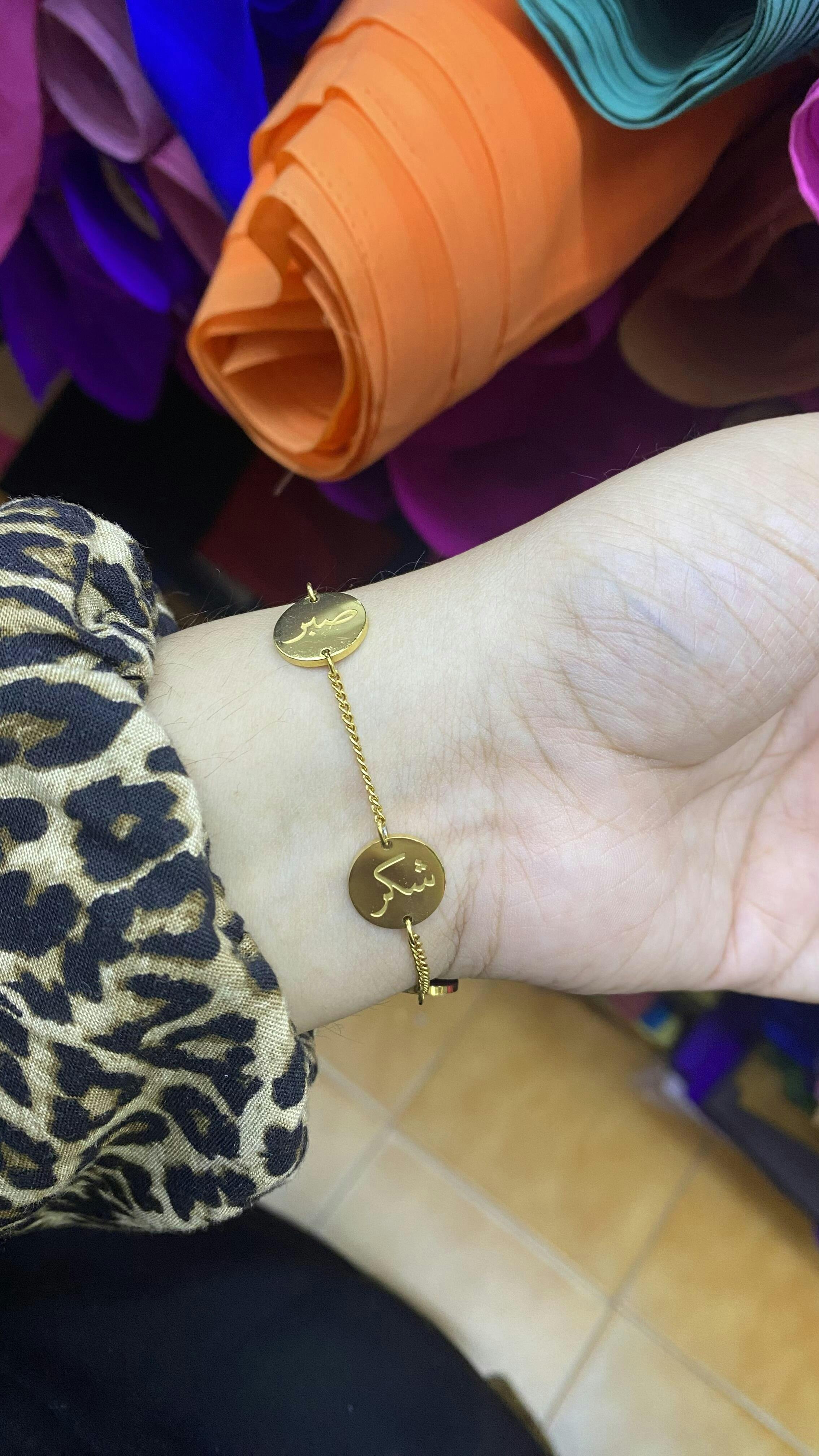 A modern take on the classic charm bracelet, this piece is sure to make you swoon! Each coin is engraved with stellar qualities every believer should strive to embody: Sabar (patience), Syukur (gratitude), and Tawakkal (reliance on God). These three noble acts of worship when internalized and practiced, guarantee contentment of the soul and attraction of His infinite mercy. Wear this bracelet as a daily reminder to cultivate these qualities and let them radiate from you.