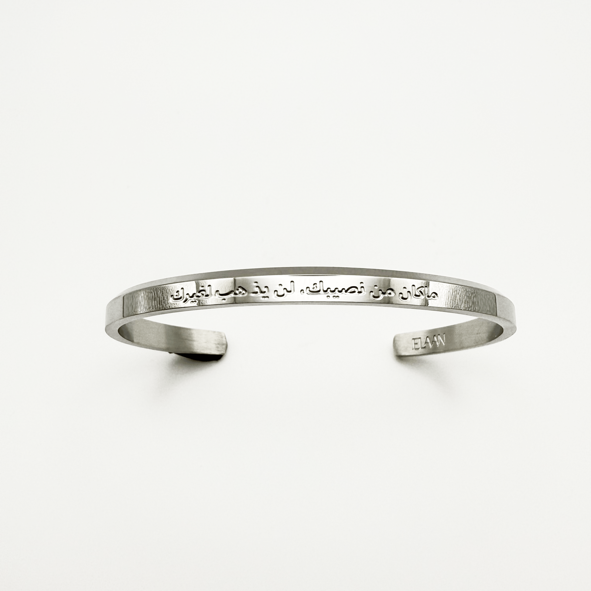 Crafted with meticulous attention to detail, it features an engraving of the Arabic quote, "What is meant for you won't pass you." This phrase, deeply rooted in the concept of qadar, serves as a powerful reminder that your destiny is divinely ordained and that you are under His care and protection.